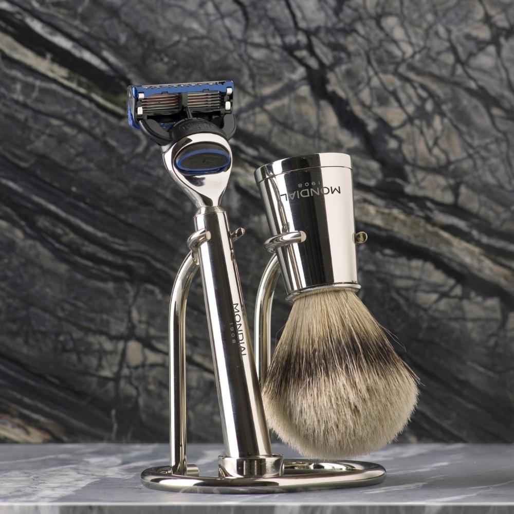 Organize and display your shaving kit with stands in a chrome finish or complete 3-piece sets.