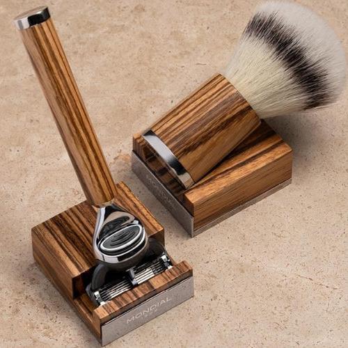 The latest design to fulfill the Mondial vision and love of extraordinary design and quality in men's shaving and grooming. These splendid masterpieces are handcrafted to draw inspiration from the exclusive character of the precious hardwoods - Zebrano and Wengé - used in their construction.