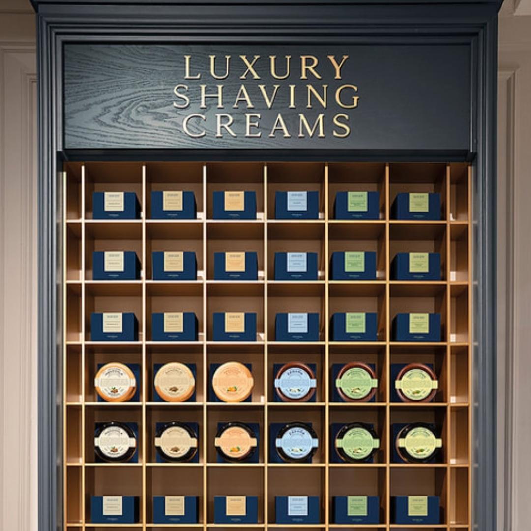 The quality of our brand is visible in every detail of our retail space, including the experience for our luxury artisan shaving creams in six classic fragrances.
