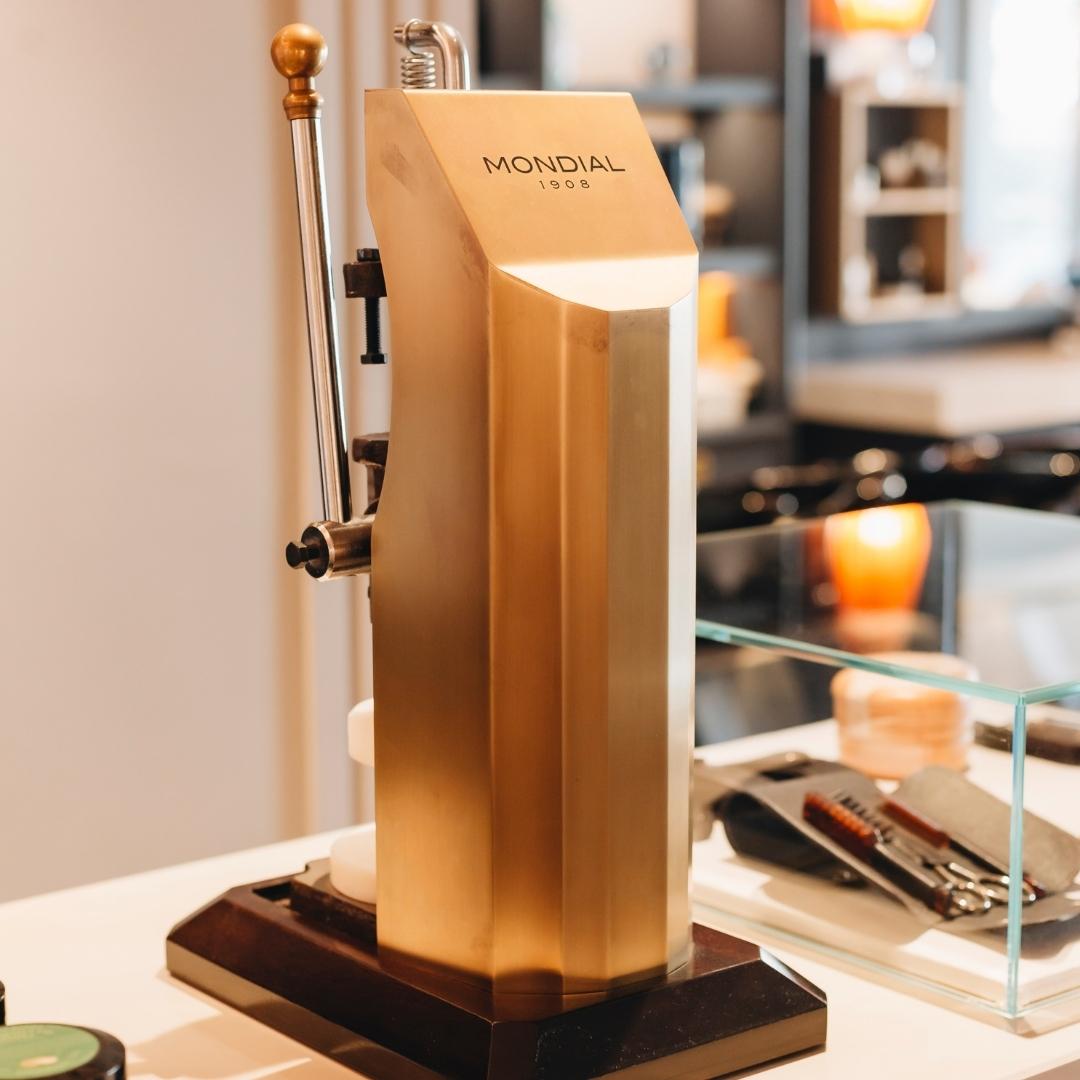 Designed as a space where one can rediscover the pleasure of traditional shaving, it is also a space where we bring to life our vision and concepts for the Mondial brand and the future of men's grooming built on our unique understanding of its past.