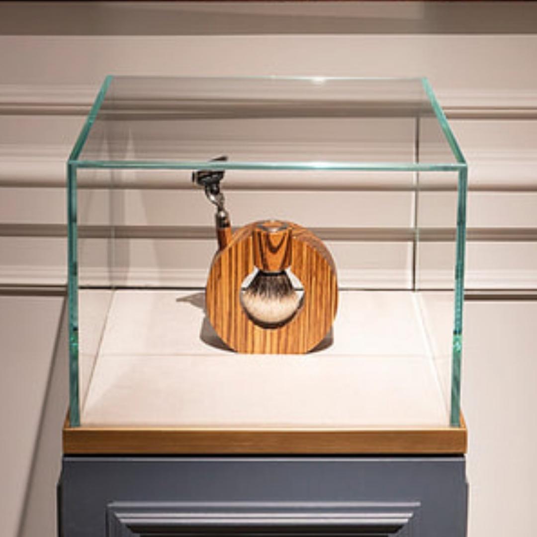 On display are several artifacts, including our award-winning Sphaera wet shaving set designed by renowned architect who is a member of our family's fifth generation.